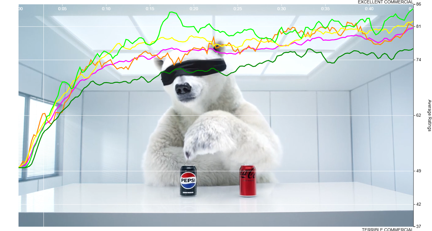 Between watching each commercial, respondents were asked post-exposure questions to assess their opinions of the commercial and brand.