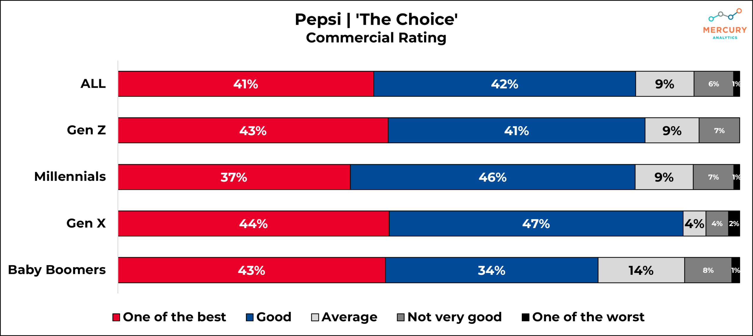 Mercury’s study tested the performance of these commercials among a national sample of n=1011 of US adults aged 18+ who indicated that they were ‘very’ or ‘somewhat’ likely to watch the Super Bowl this weekend. Additional quotas were set to ensure the sample was representative of age and ethnicity demographic breakdowns in the US.